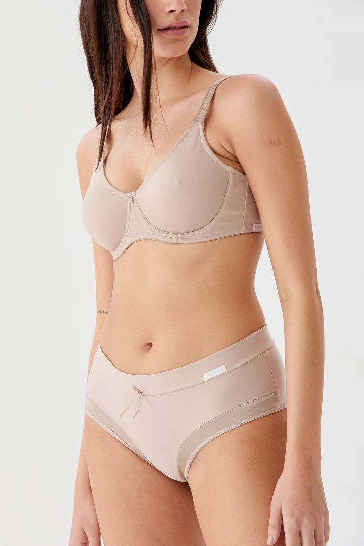 Bombacha de tiro medio confeccionada en tela supplex de algodón y detalles en satén.