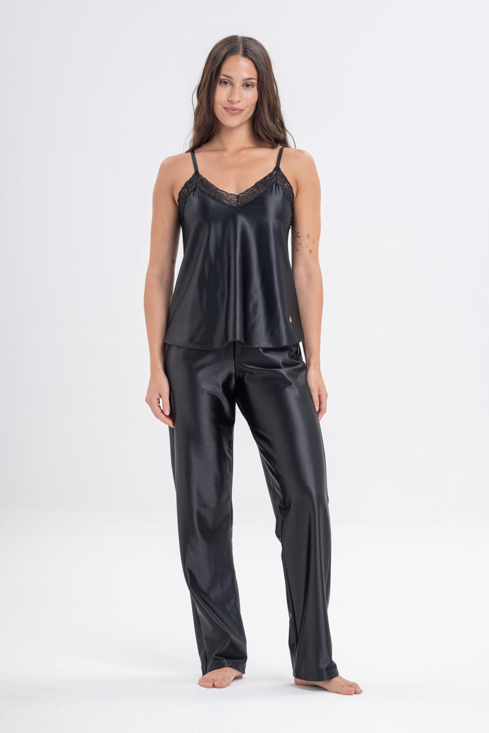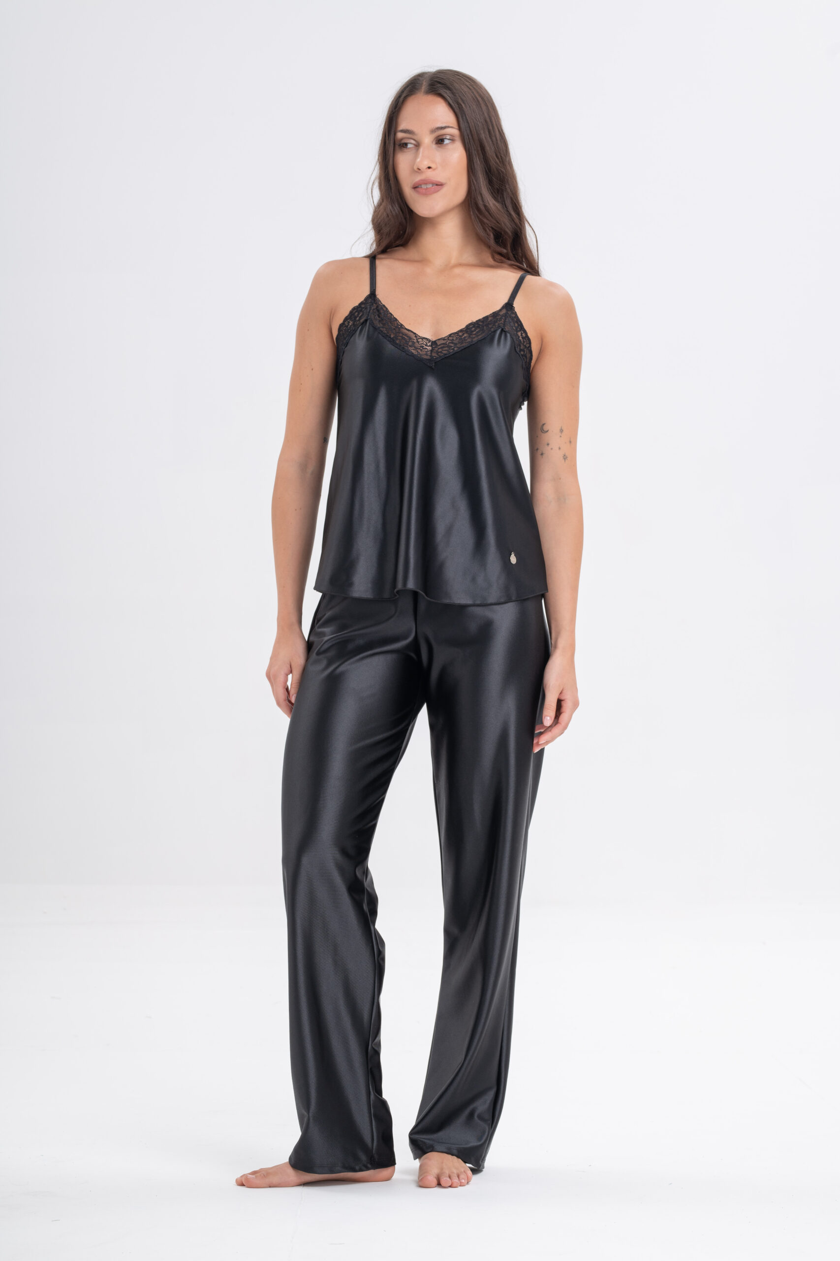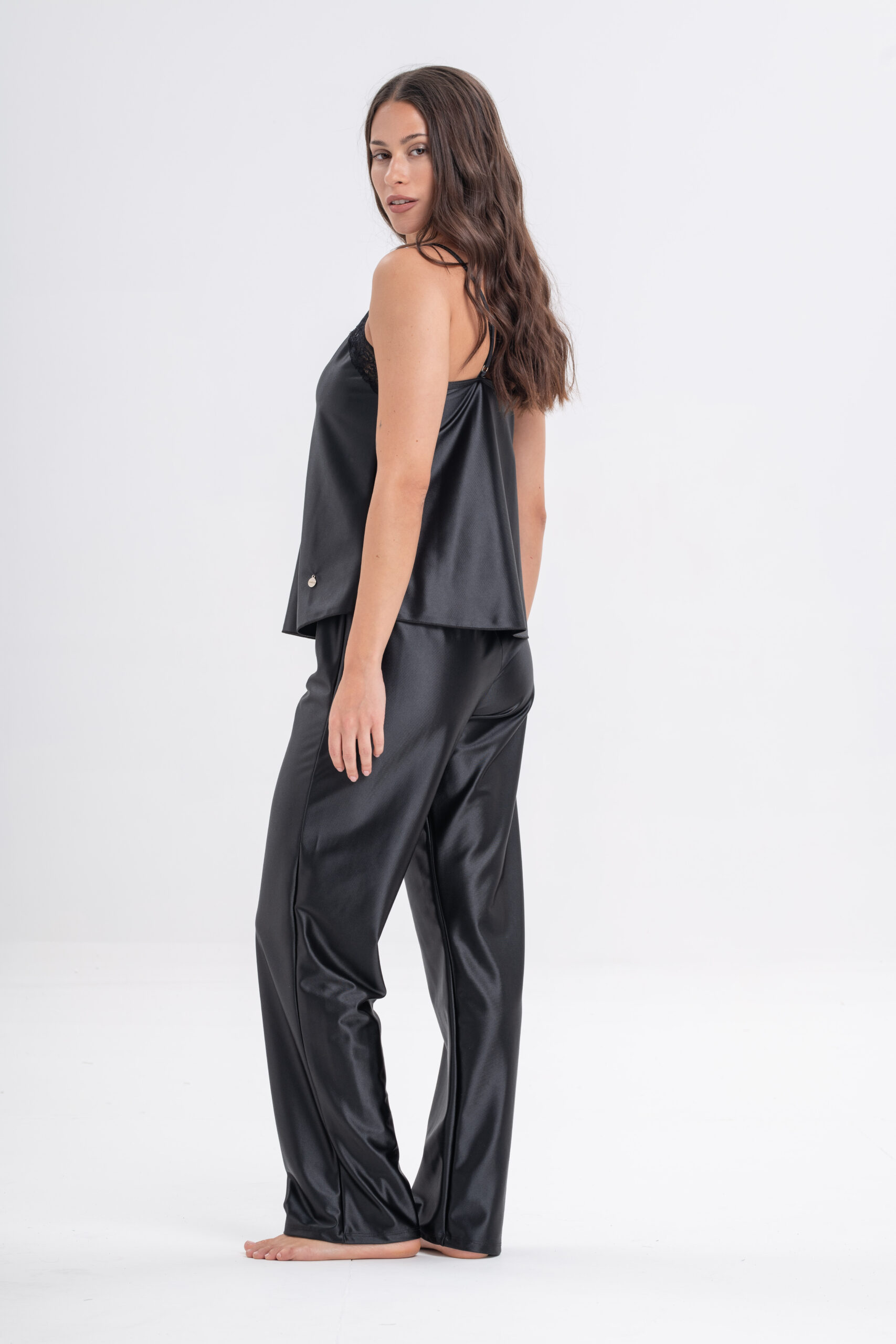 DOLCISIMA 1544L PIJAMA PANTALON LARGO Y SOLERO SATEN DE PUNTO Y PUNTILLA – Linea Reina