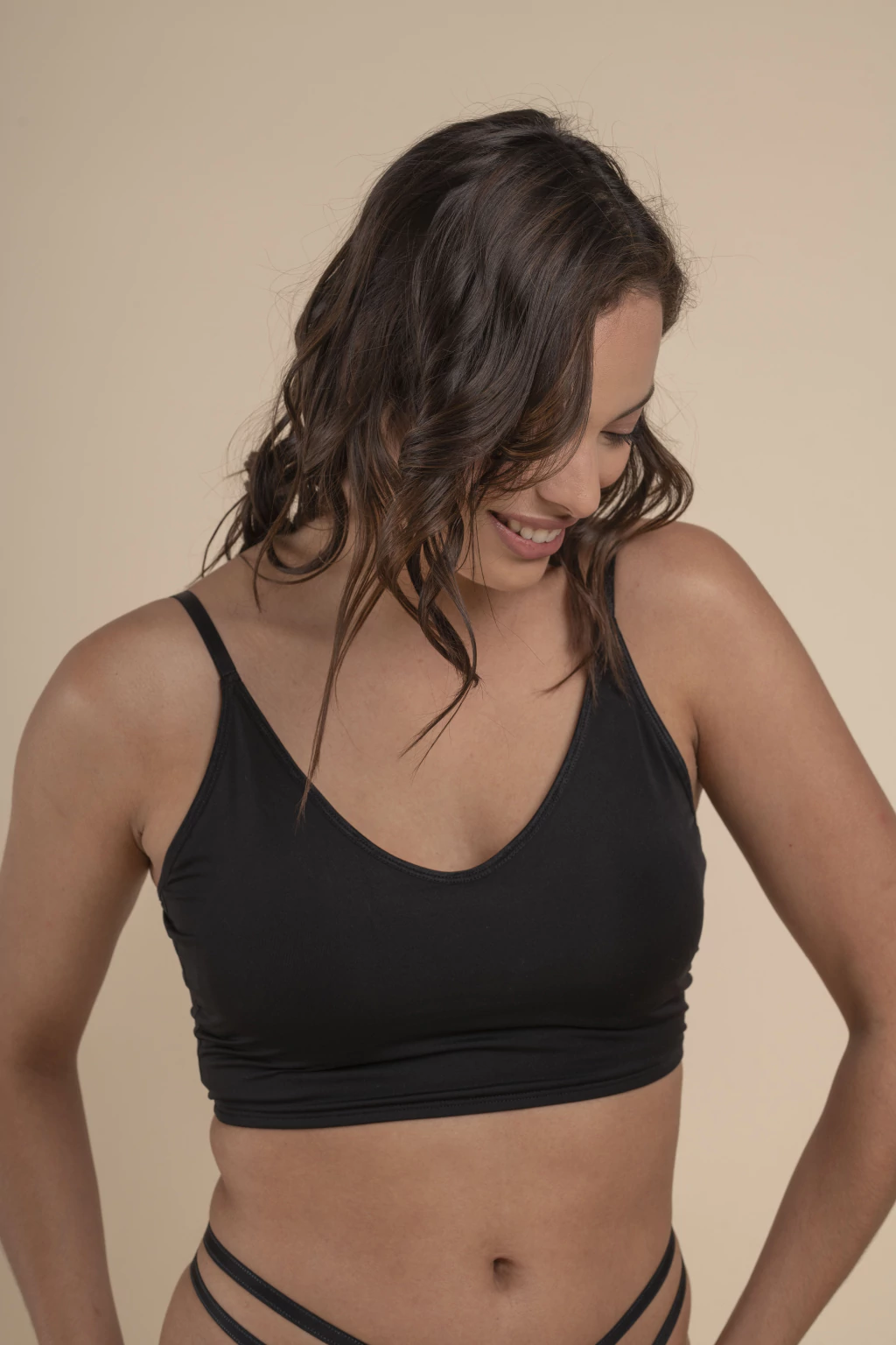Top de Microfibra con escote profundo, con estructura y tazas internas.