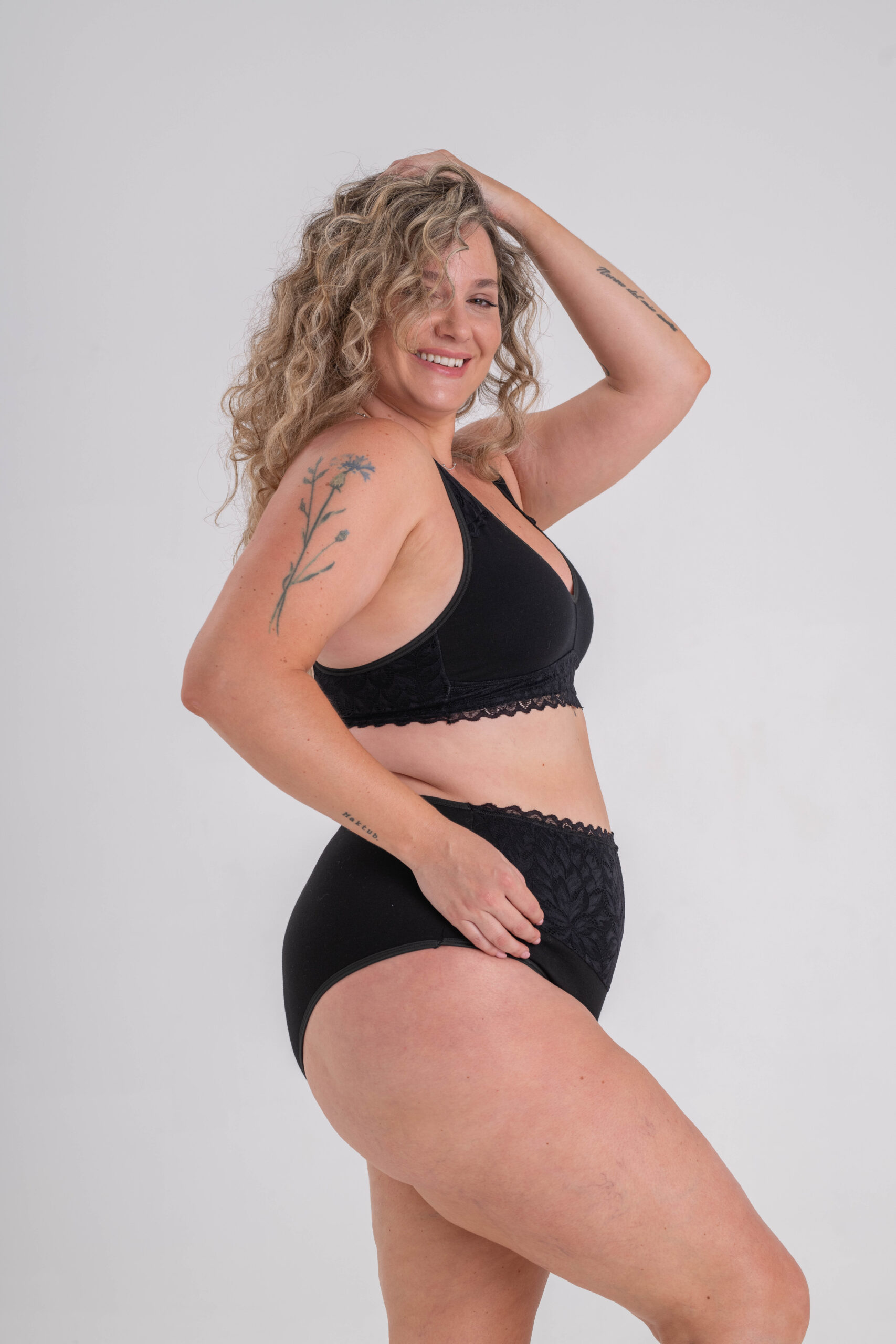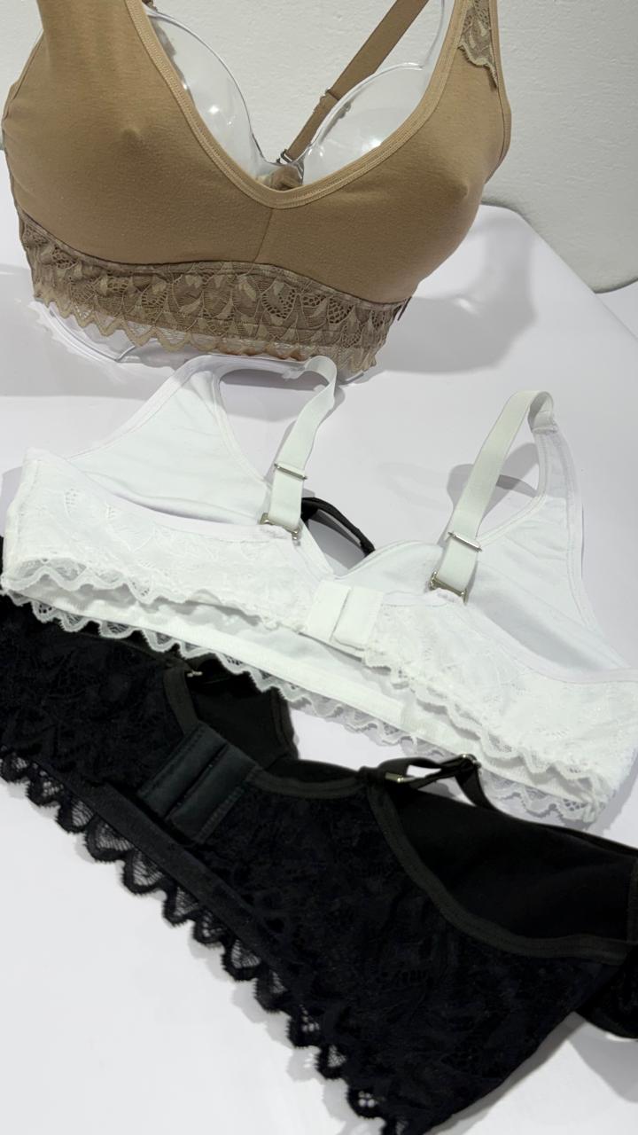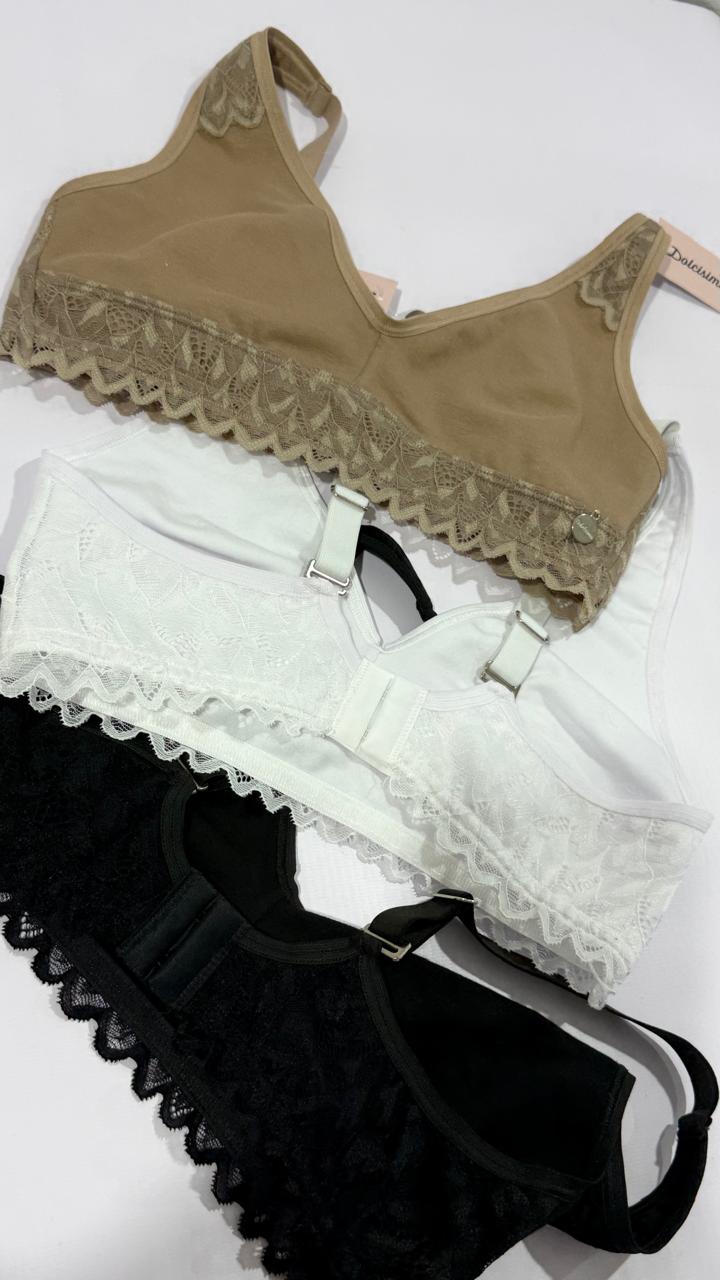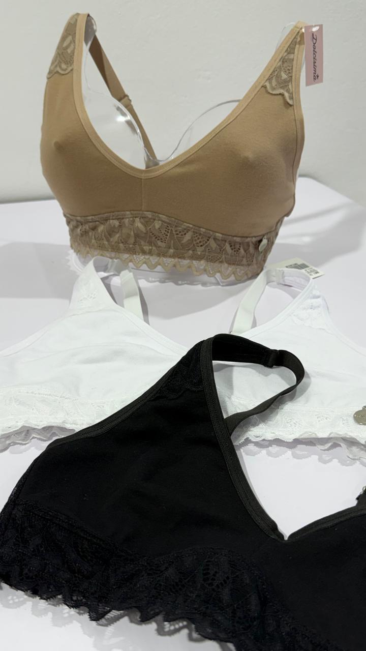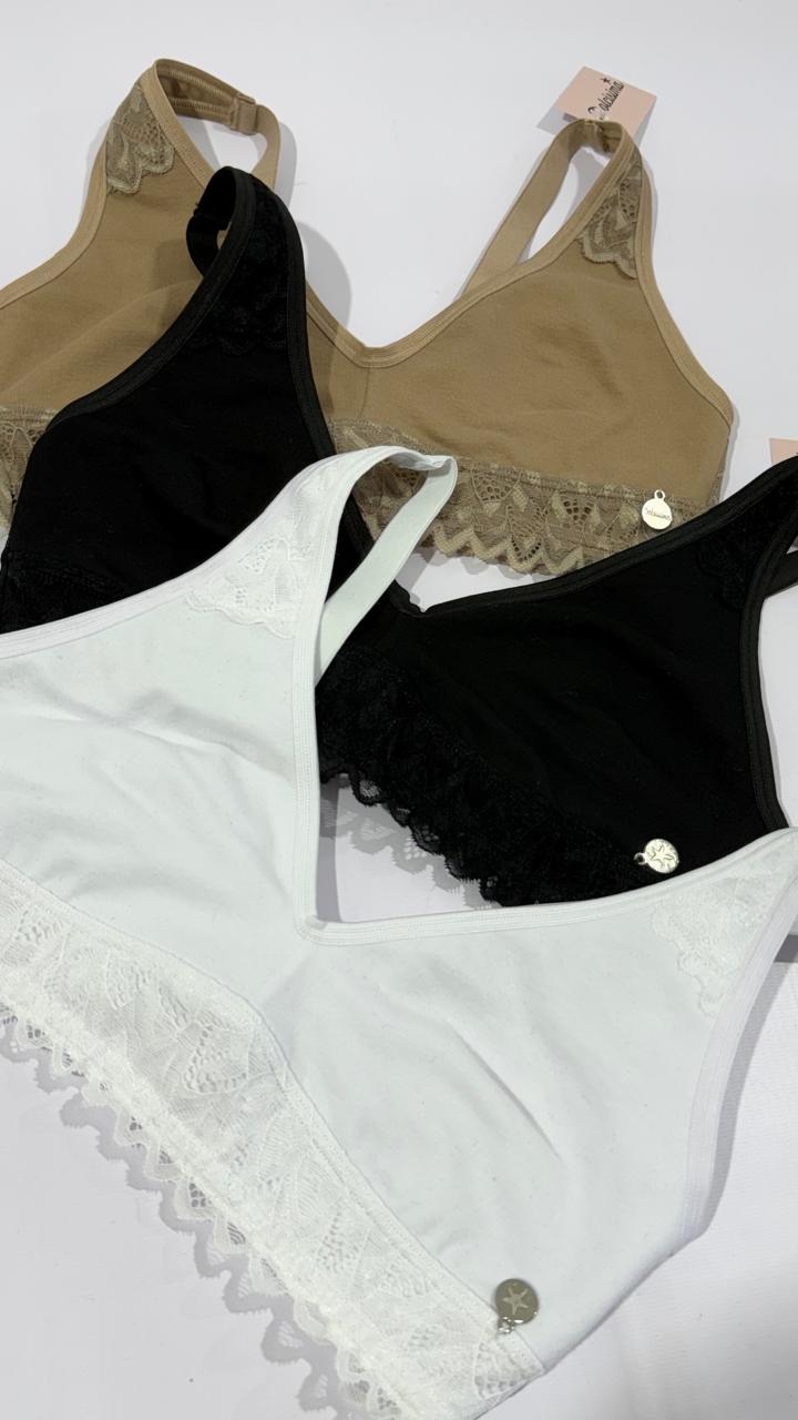 Corpiño confort Chiara doble taza preformado de algodón y lycra y puntilla.