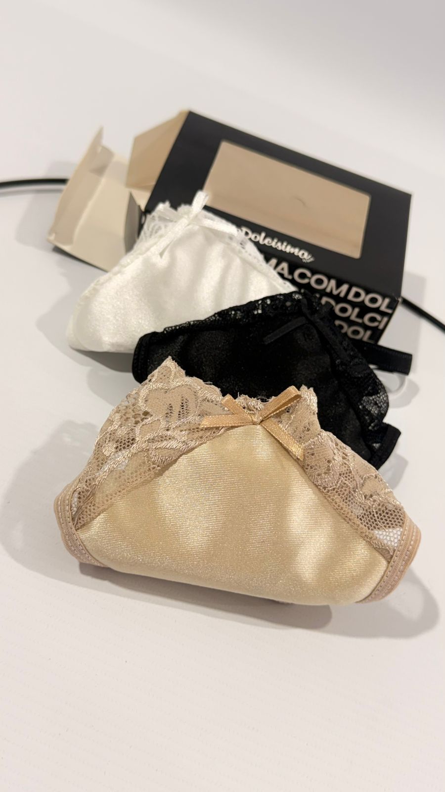 Pack x 3 less alta ANNA en V con correderas lustrel y puntilla