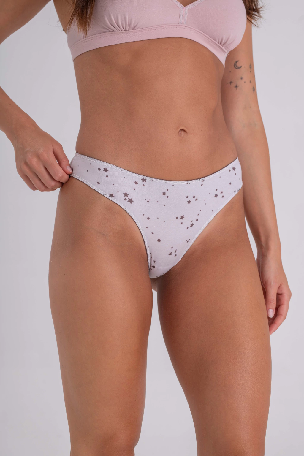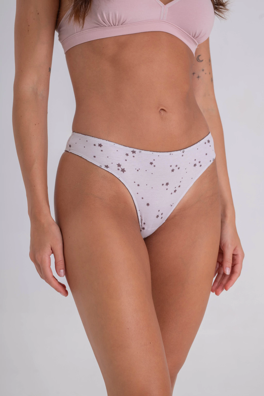 - Su presentación en pack x 3: 1 bombacha estampada de estrellas, 1 bombacha lisa y 1 bombacha estampada print.