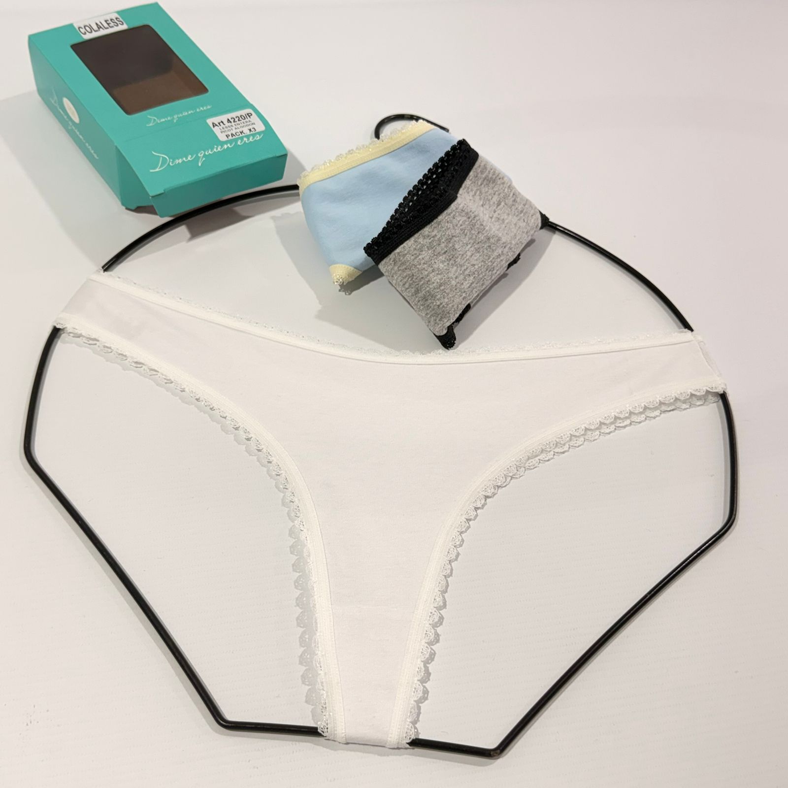 DQE 4220 PACK X3 LESS ENTERA DE ALGODON LISO CON ELASTICO PICOT EN CINTURA Y PIERNAS cantidad