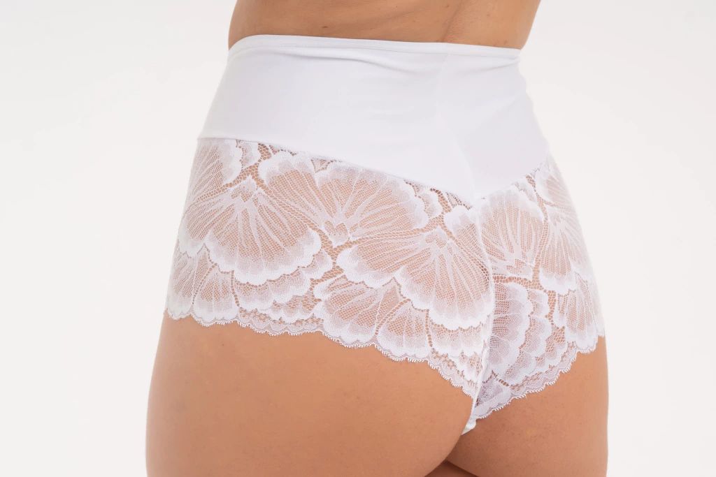 Trusa en tricot con lycra y puntilla.